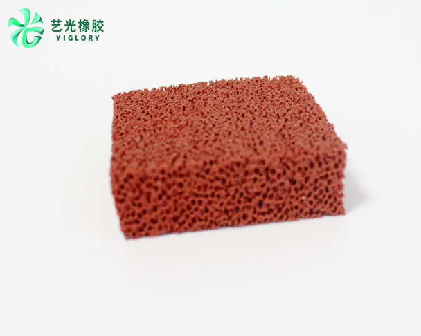 硅橡膠開孔海綿的形成:以高透氣性聚氨酯軟質海綿載體,采用浸膠擠壓工藝,將液體硅橡膠包覆在所有高透氣性聚氨酯軟質海綿所有經(jīng)絡上,硫化后,再經(jīng)過二次硫化,使內部的聚氨酯海綿破壞,制成具有高透氣性的硅橡膠開孔海綿,該材料使用溫度范圍為-60250℃,平均孔徑范圍為1.5mm-0.2mm。